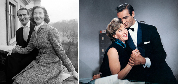 before their wedding in 1957. (right) Lois Maxwell in her first