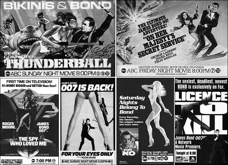 The Bond films were hugely successful on US television (although often heavily censored), and introduced a new audience to 007 throughout the 1970s and 1980s. ABC continued to premiere the films (this time in chronological order) from Live And Let Die which debuted on Sunday, October 31, 1976 until The Living Daylights on Sunday, April 15, 1990. ABC then lost the television rights to premiere the James Bond films which then debuted on the FOX Network. |