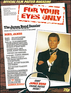 James Bond In The Incredible World Of Thunderball later made an appearance [pictured above] in the first episode of the popular BBC Television series Adam Adamant Lives! (1966-67). Broadcast on June 23, 1966, the episode titled A Vintage Year for Scoundrels starred Gerald Harper (1929-2025) as the titular character - an adventurer born in 1867, who had been revived from hibernation in 1966, thus offering viewers a satirical look at life in the 1960s through the eyes of a Victorian. Some later films in the James Bond series also had an official Souvenir Brochure or Poster Magazine available to purchase in cinemas during the original release of film. Souvenir brochures were not produced for every title and usually reserved for ‘Epics’ or ‘Roadshow’ releases of major films in the Fifties and Sixties. These brochures usually contained profiles of the stars appearing in the film, technical credits, stills and a synopsis of the film together with historical data if appropriate. The publication of brochures and magazines just dedicated to one film ceased at the end of the last century, and nowadays the James Bond films are promoted with features in all manner of physical publications and online platforms in the lead up to, and during their release. The sheer number of magazines, websites and social media platforms covering the James Bond films nowadays makes it impossible to compile a definitive list of everything available for any given title since the start of the new millennium. |