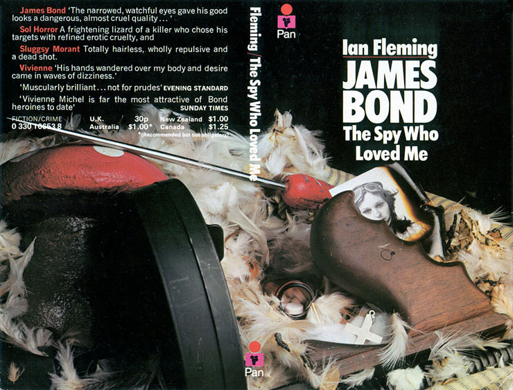 July 1973 saw THE SPY WHO LOVED ME and FOR YOUR EYES ONLY added to the series, each once again with an initial print run of 30,000 copies. A further 25,000 copies of THE SPY WHO LOVED ME were printed in November 1974, making this the hardest of the ‘still-life’ covers to find today, as only 55,000 were ever produced. The ‘white-model’ edition of THE SPY WHO LOVED ME was the last title issued in that series and had been printed for a second time in April 1972. Presumably copies of this edition were still in circulation in the early 1970s, so PAN waited for those to sell out before issuing the title with the ‘still-life’ cover. The last 500 copies of THE SPY WHO LOVED ME sold in 1976 and the novel was then out-of-print until 1980, when it appeared as the penultimate title issued in the Triad-Panther series. OCTOPUSSY and THE SPY WHO LOVED ME were the only Ian Fleming titles not to sell at least one-million copies as PAN paperbacks. |