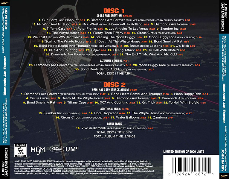 seventh James Bond film. John Barry continues on his mission of creating classic Bond